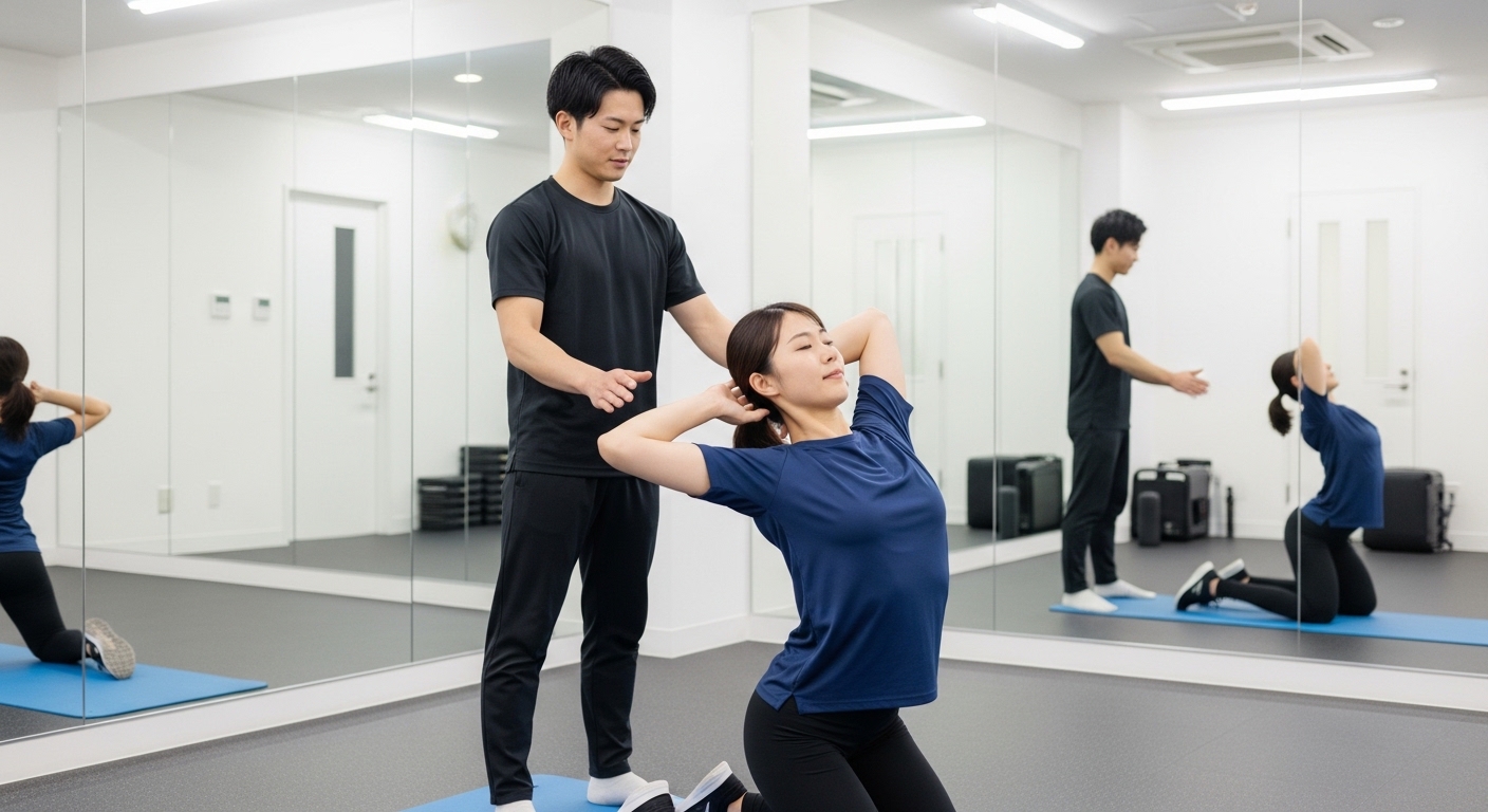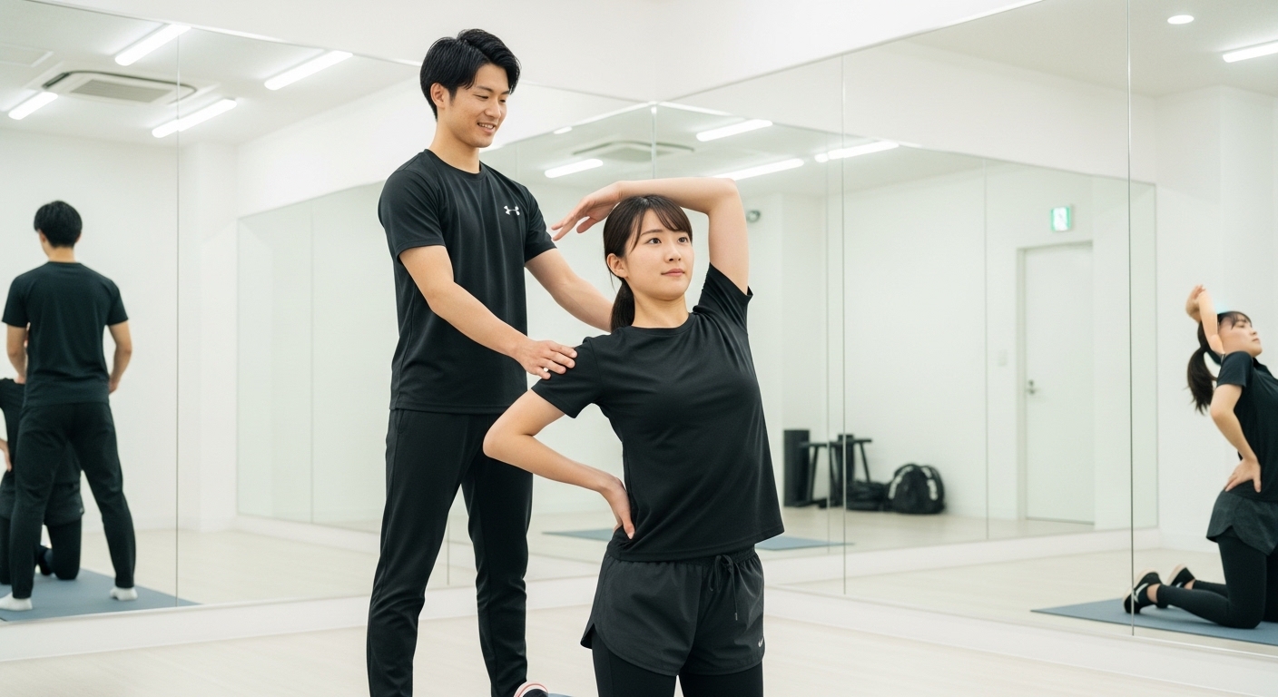 - 東浦町のパーソナルトレーニングでは、姿勢分析にもとづき猫背や反り腰の原因を特定し、トレーニングとストレッチを一体で行います。